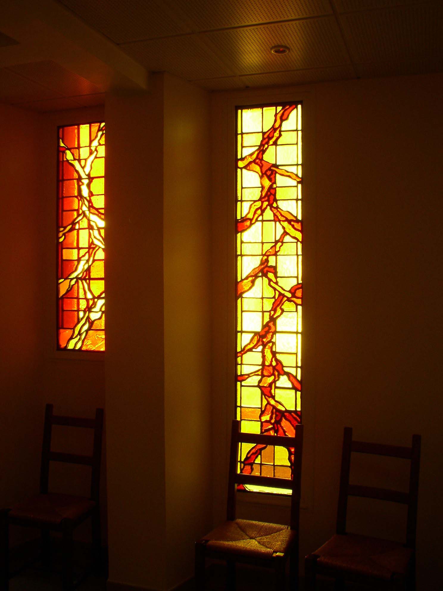 Photos vitraux réalisés à l’Eglise des Pèlerins d’Emmaüs de Pontault Combault