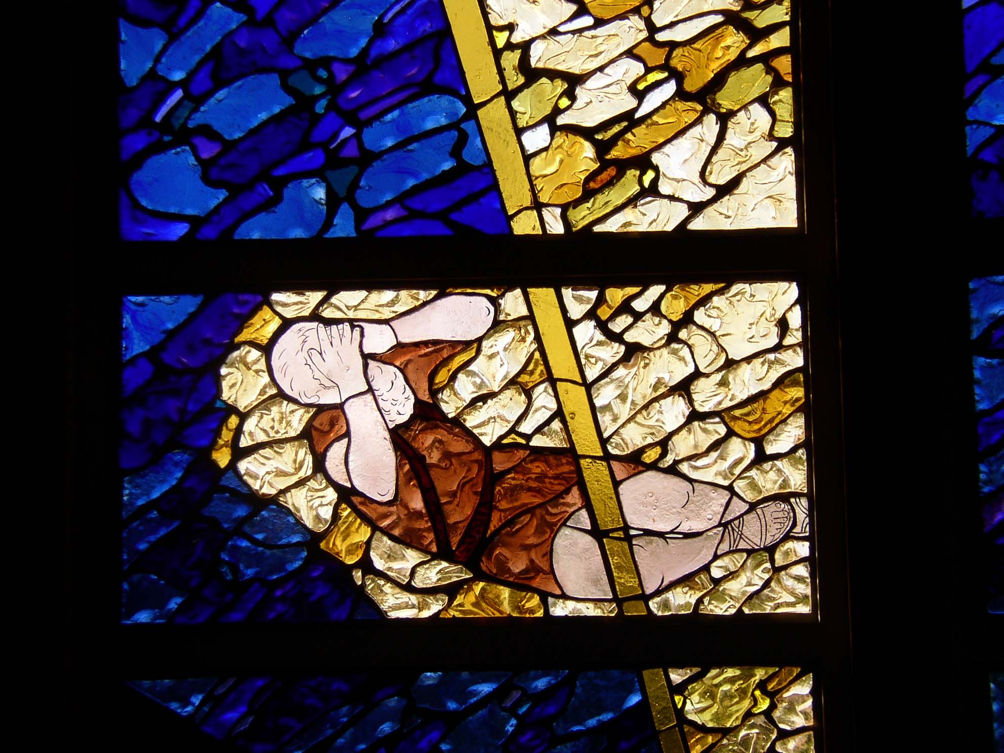 Représentant la chute de St Etienne lors de sa lapidation - Eglise des Pèlerins d’Emmaus (77)