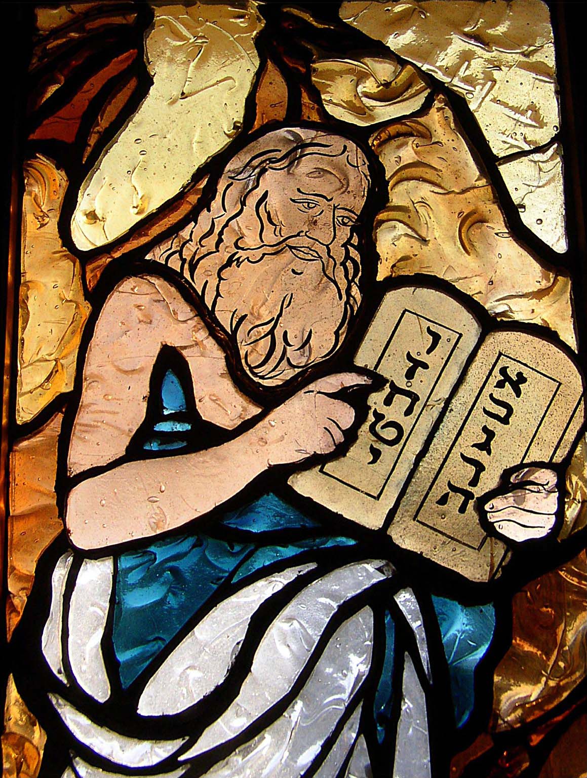 tenant les Tables de La Loi – les 10 commandements – 2 m x 0.80